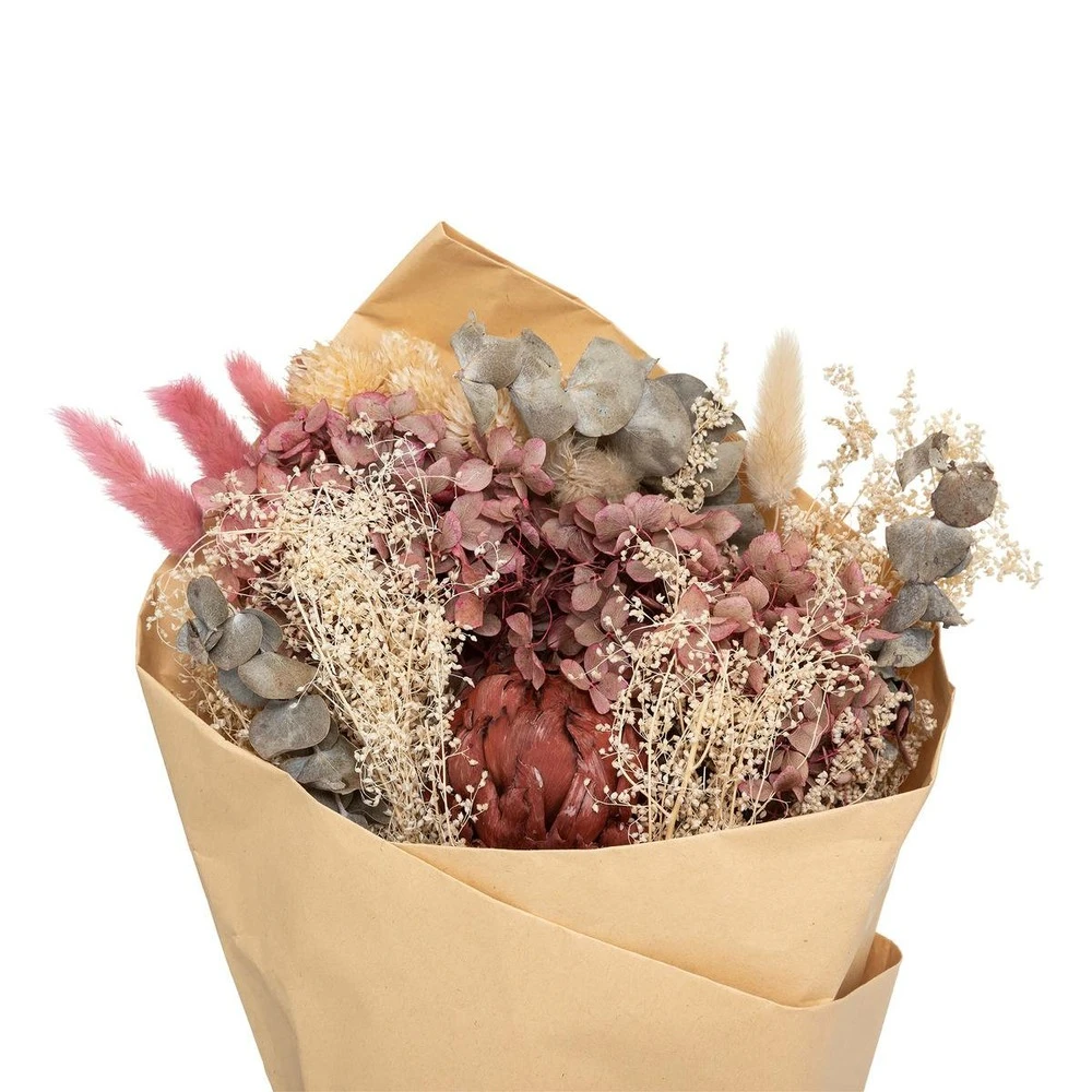 matière du bouquet : plantes séchées ( composé de roses naturelles séchées et de plusieurs autres variétés de plantes ) –