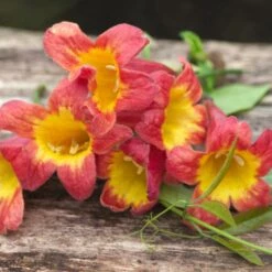 cette variété se distingue des autres bignone capreolata par ses fleurs aux couleurs de mandarines. Les caractéristiques sont les mêmes que le bignonia capreolata.