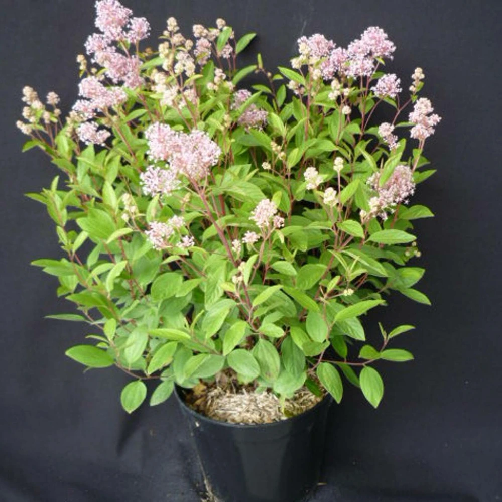 le céanothe marie simon est une variété à la fleur en panicule rose clair. son feuillage vert tendre est caduc.