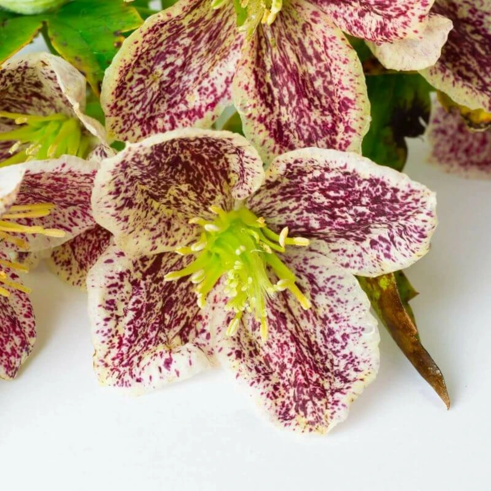 la clematite cirrhosa ‘freckles’ est une plante grimpante semi-persistante. Elle profitera de l’hiver pour dévoiler ses magnifiques fleurs blanches tachetées de violet.