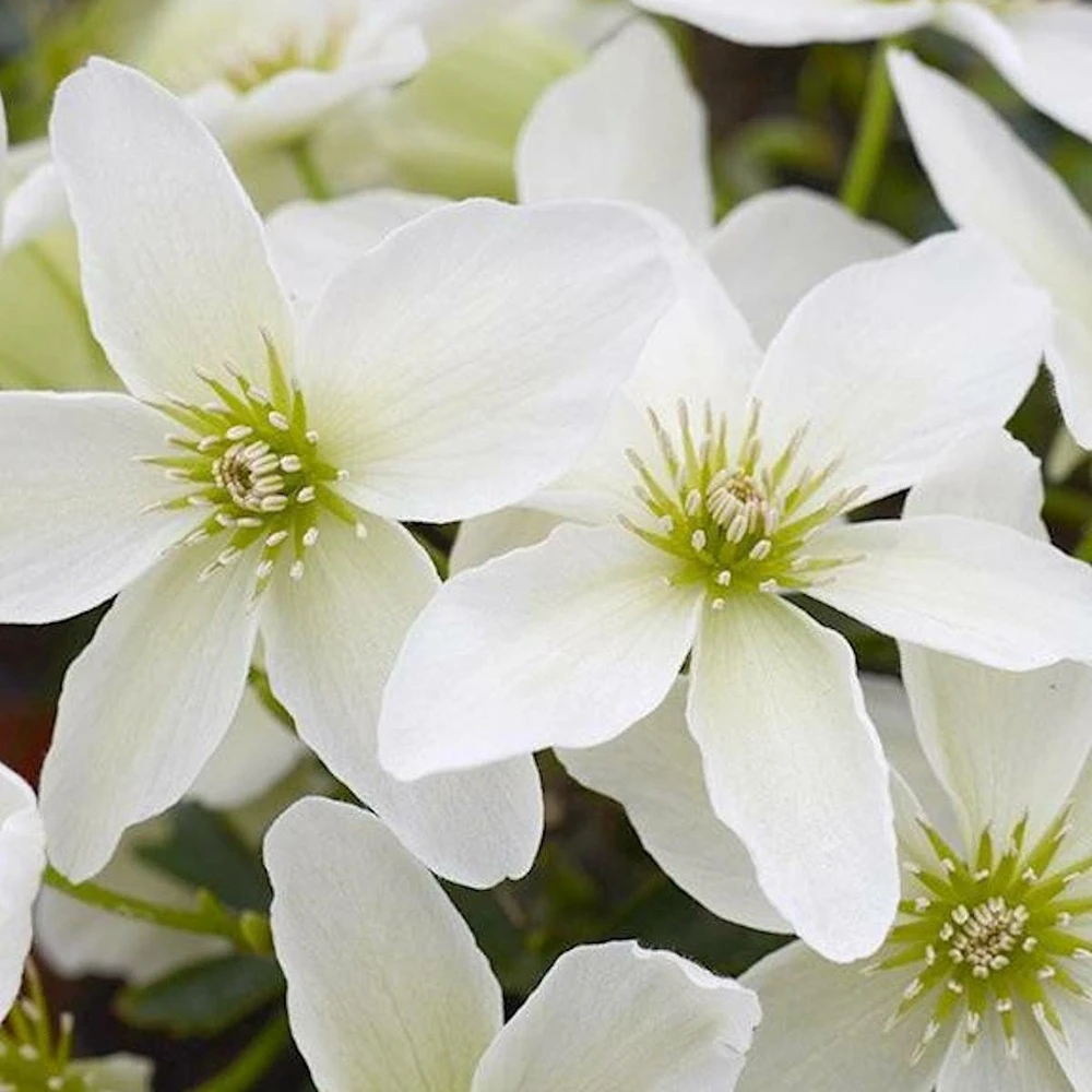 cette clématite à feuilles persistantes est assez trapue, idéale pour le petits supports. Elle produira vraiment une tour de fleurs blanches et lumineuses en forme d’étoile en masse