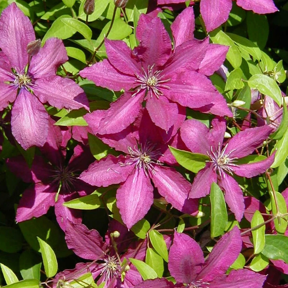 fleur de taille moyenne rouge magenta avec des sépales ronds. Cette variété est originaire d’estonie et issue d’un croisement entre la clématite ernest markham et ‘valge daam’.