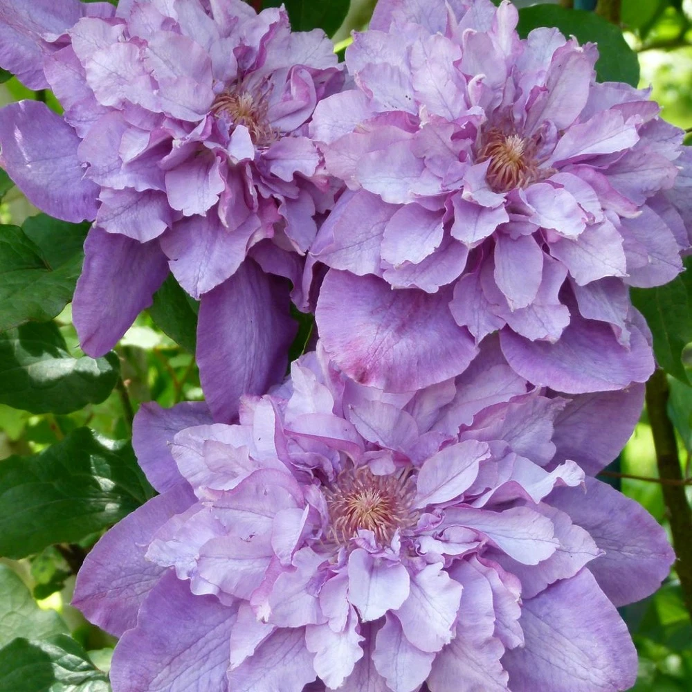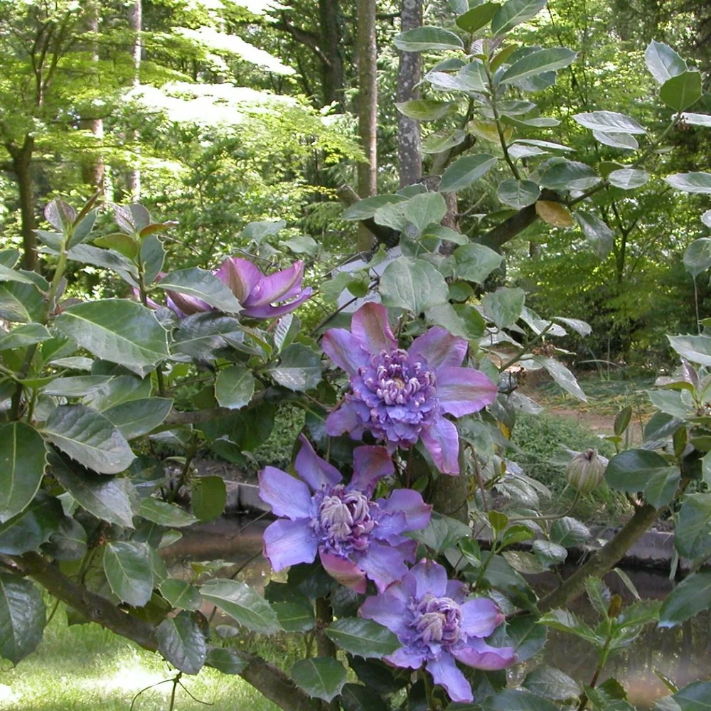 grandes fleurs bleu-mauve, doubles au printemps et simples à l’automne. Cette variété est probablement issue d’un croisement entre la clématite daniel deronda et la clématite beauty of worcester, elle a était obtenue en 1954 en angleterre.