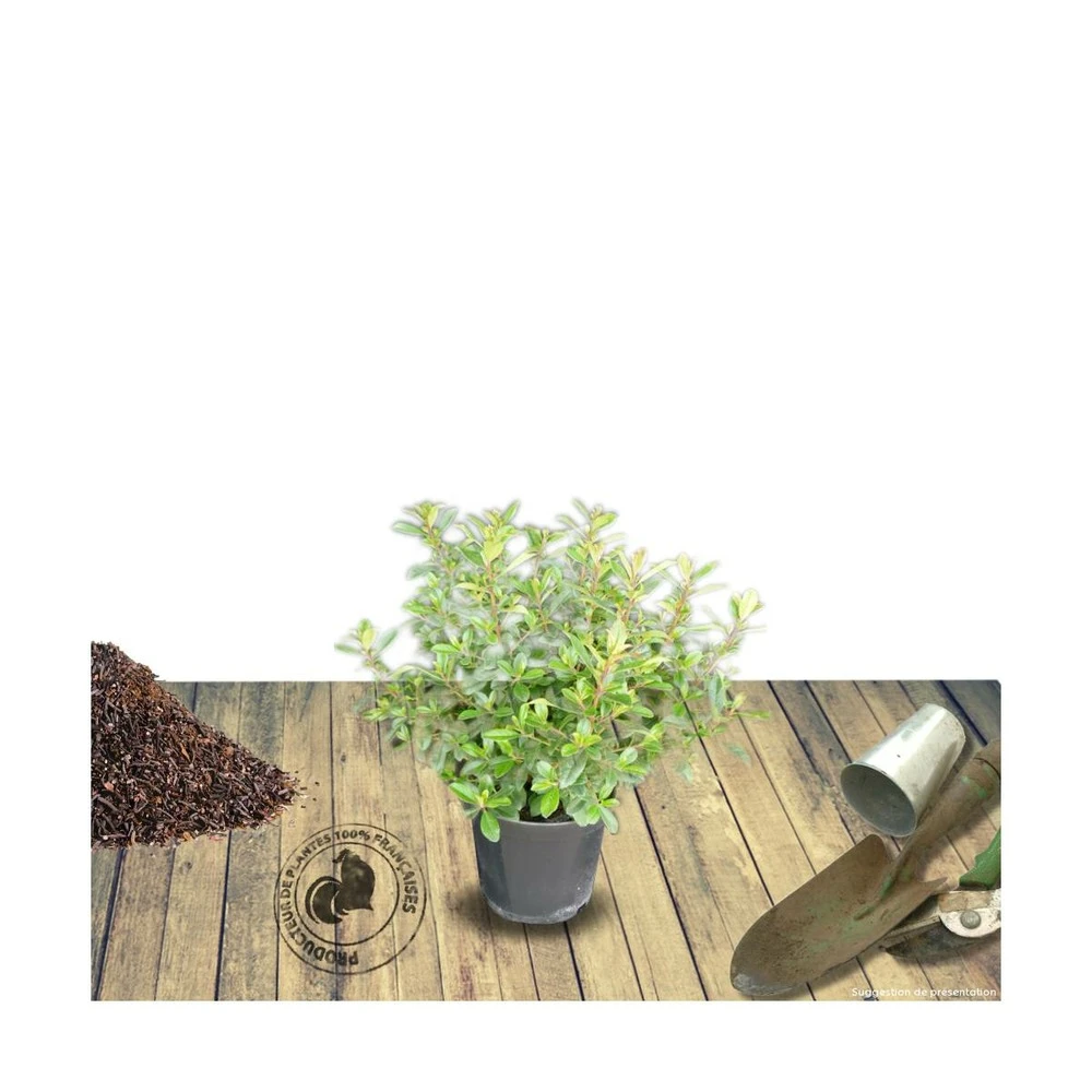 cet arbuste au port arrondi et au feuillage vert, brillant et persistant dispose d’une jolie floraison rose pâle apparaissant dès le mois de juin et s’étalant jusqu’en août.