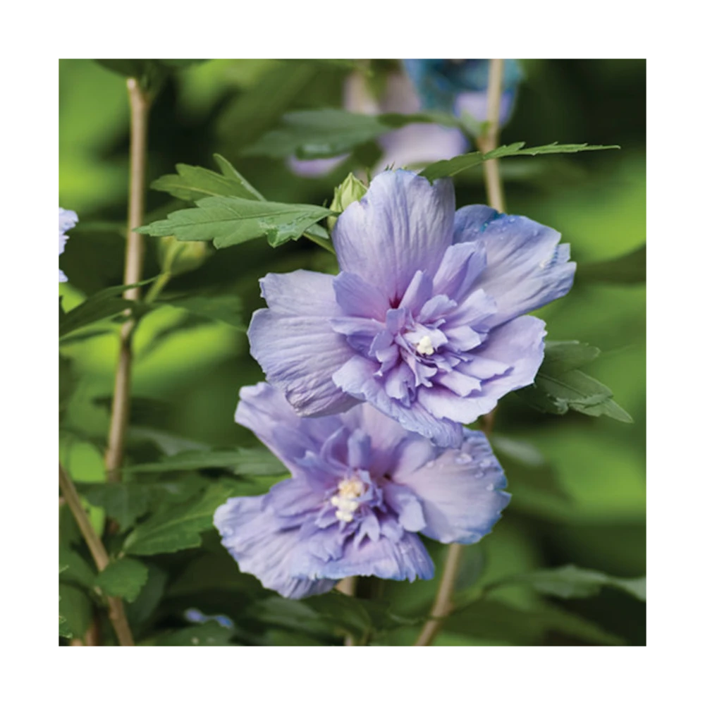 l’hibiscus blue chiffon® est un petit arbuste atteignant à taille adulte 2 mètres de haut. Sa floraison bleue double, tout l’été en fait un arbuste indispensable dans vos massifs ou en isoler au jardin. Au fil des années cette plante restera trapue est compacte si elle est taillée après la floraison.