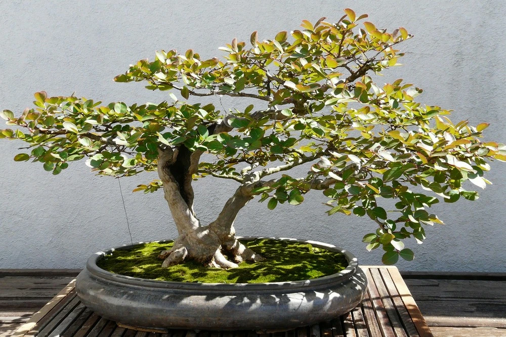 joli bonsaï de serre froide avec des petites feuilles et de belles fleurs