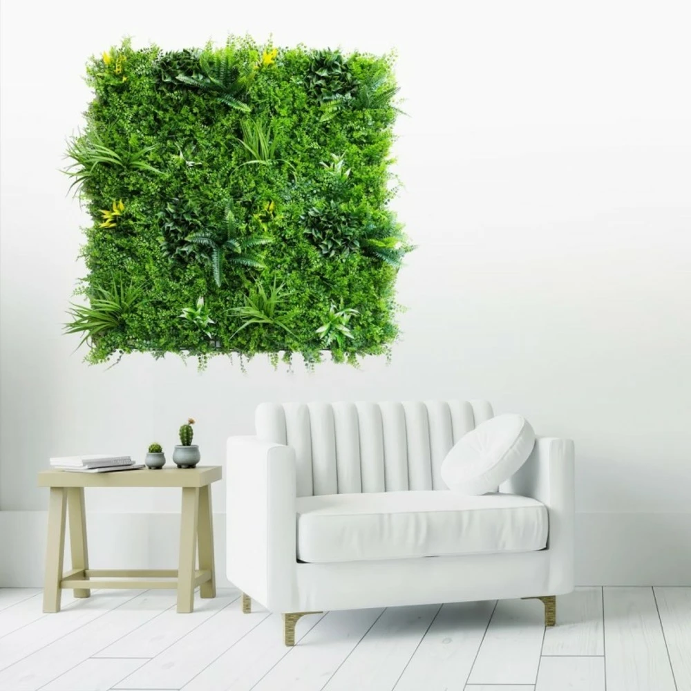 notre mur végétal artificiel en intérieur est idéal pour décorer un mur en les accrochant facilement directement dessus ou en créant votre propre tableau végétal artificiel.