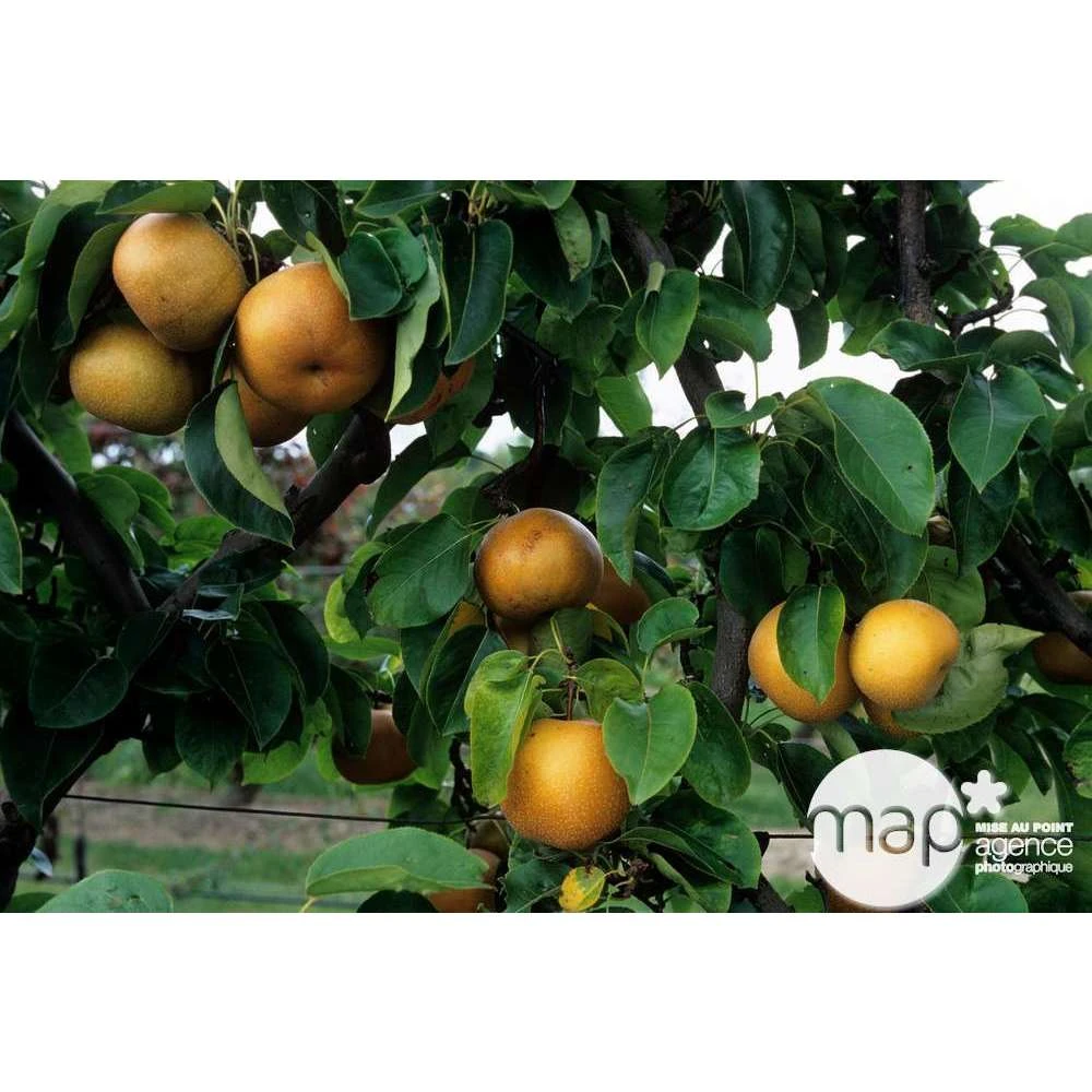 Contrairement à son surnom, le nashi n’est pas un croisement entre un pommier et un poirier. Cette variété est issue d’un croisement entre ‘Kosui’ (femelle) et ‘l33’ (mâle).
