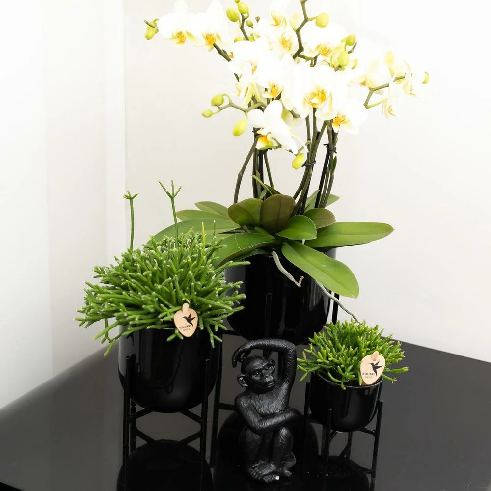 Rhipsalis baccifera est une plante succulente qui pousse sous forme de lianes pendantes. Elle a des tiges minces et ramifiées qui ressemblent à des brins ou à des segments cylindriques. Les tiges sont généralement de couleur vert vif, mais certaines variétés peuvent présenter des nuances de rouge ou de brun. Rhipsalis baccifera préfère un emplacement lumineux, mais indirect. Elle peut tolérer un peu de lumière directe du matin ou du soir, mais évitez une exposition prolongée au soleil brûlant de midi. Rhipsalis baccifera a des besoins en eau modérés. Il est important de maintenir le sol légèrement humide, mais pas détrempé. Arrosez-la lorsque le sol commence à sécher en surface. En général, un arrosage toutes les 1 à 2 semaines pendant la période de croissance active est approprié. Réduisez les arrosages pendant les mois d’hiver, en espaçant davantage les arrosages, car la plante entre en période de repos.