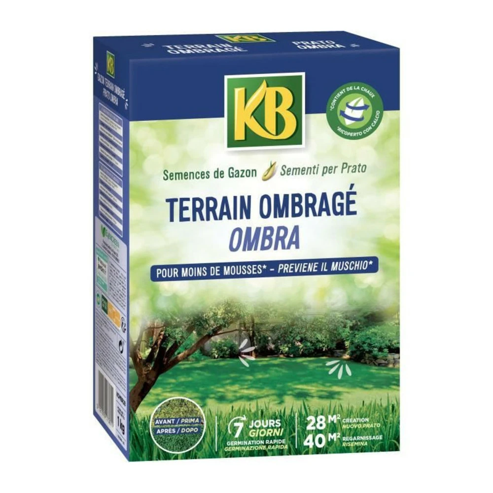 Semences aux carbonate de calcium, pour l’acidité du sol et l’arrivée des mousses. L’implantation rapide du ray grass anglais prévient l’apparition de mousse. La fétuque rouge traçante est auto-réparante. La chaux réduit l’acidité du sol. Le carbonate de calcium diminue le ph du sol et améliore la germination.