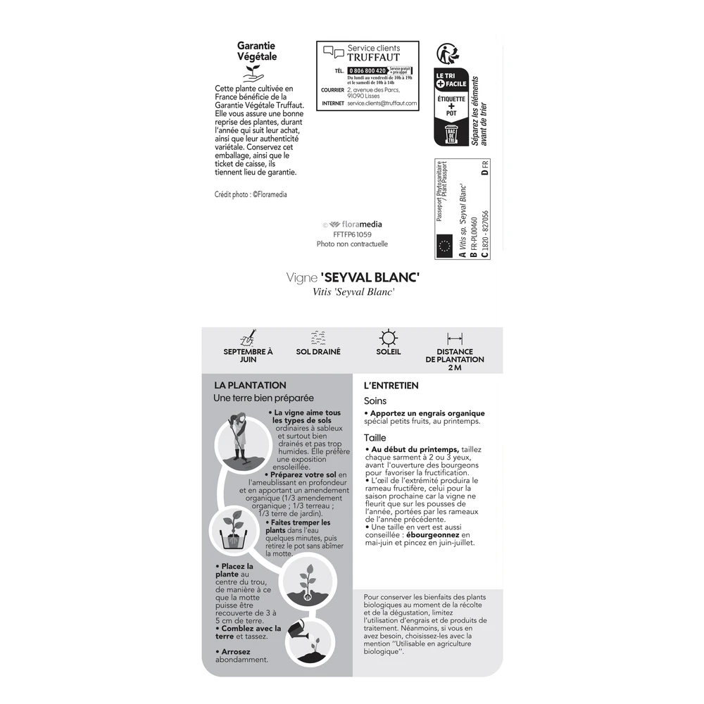 Le vitis est un genre de plante, d’arbuste, arbrisseaux ou plantes sarmenteuses de la famille des vitaceae. Ce genre comprend environ 70 espĂšces plus communĂ©ment appelĂ©es vignes. La vigne ‘Seyval Blanc’, originaire de St Vallier dans la drĂŽme, est une variĂ©tĂ© sucrĂ©e, aromatique et bien juteuse. La vigne produit des grappes moyennes Ă chair pulpeuse. Principalement utilisĂ©e pour la production de vent, les fruits arrivent Ă maturitĂ© en septembre.
