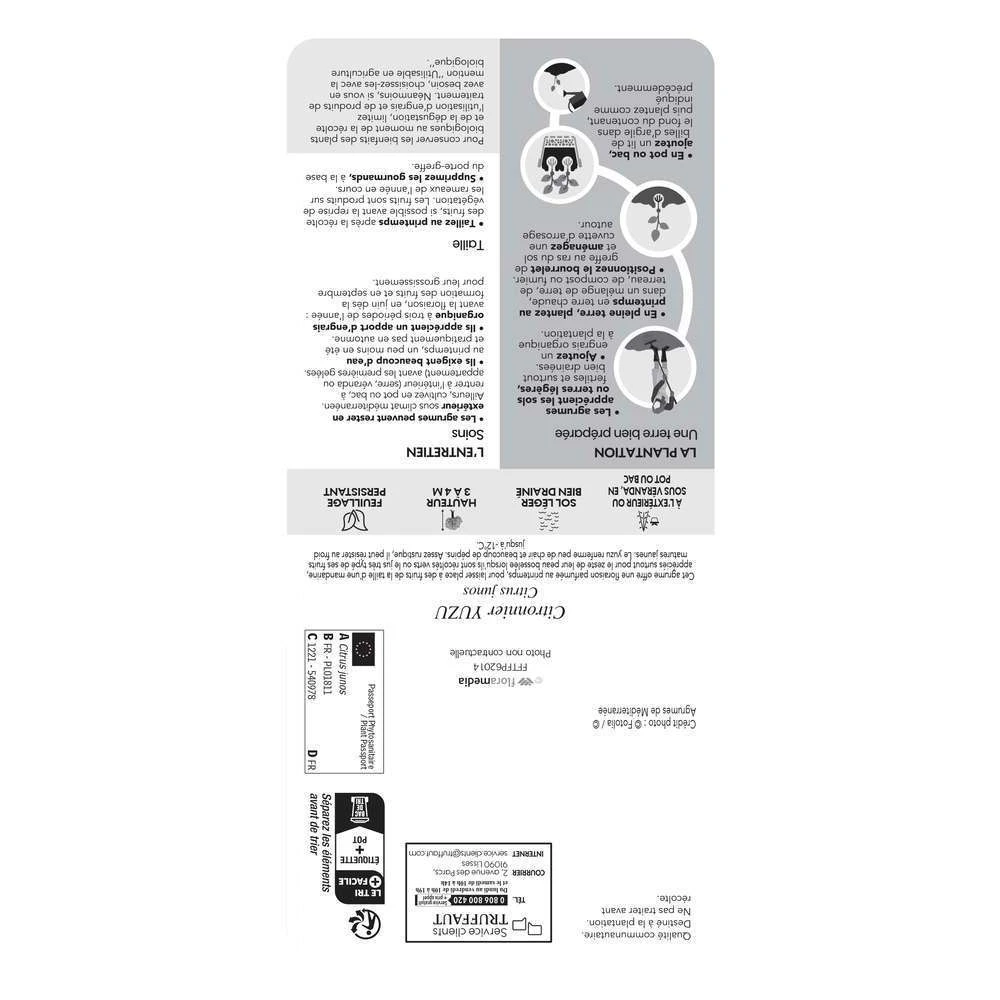 Citrus x junos ‘Yuzu’ (Yuzu) est originaire de Chine et du Tibet. Le fruit (Yuzu) est produit principalement au Japon et en CorĂ©e. Il s’agit d’un hybride, rĂ©sultat du croisement entre Citrus ichangensis et Citrus reticulata var.austera. Cet agrume Ă©pineux, atteint une hauteur de 4 m pour une largeur de 1,50 m. Feuillage persistant, vert. Floraison blanche, parfumĂ©e, en mars-avril. Fruits arrondis, bosselĂ©s, de 6 Ă 7 cm de diamĂštre, jaunes Ă maturitĂ©. Peu de chair et beaucoup de pĂ©pins. GoĂ»t acide Ă©voquant le pamplemousse acide et la mandarine. Le fruit est Ă maturitĂ© de fin octobre Ă dĂ©cembre. Rustique jusqu’Ă -12°C. On les plante en pleine terre, dans les rĂ©gions Ă climat doux, dans un sol humifĂšre, bien drainĂ©. Exposition au soleil ou Ă mi-ombre. Partout ailleurs, culture en pot en rentrant la plante dans une vĂ©randa tenue hors gel, Ă une tempĂ©rature de 10°C environ.